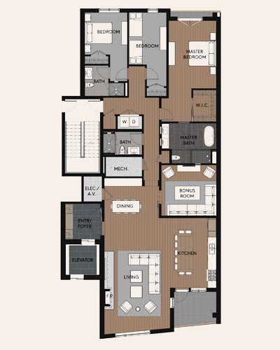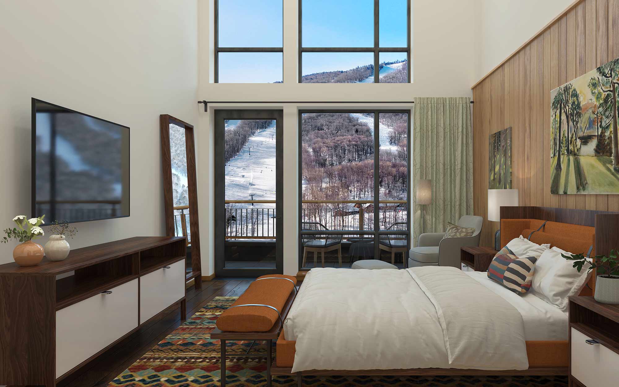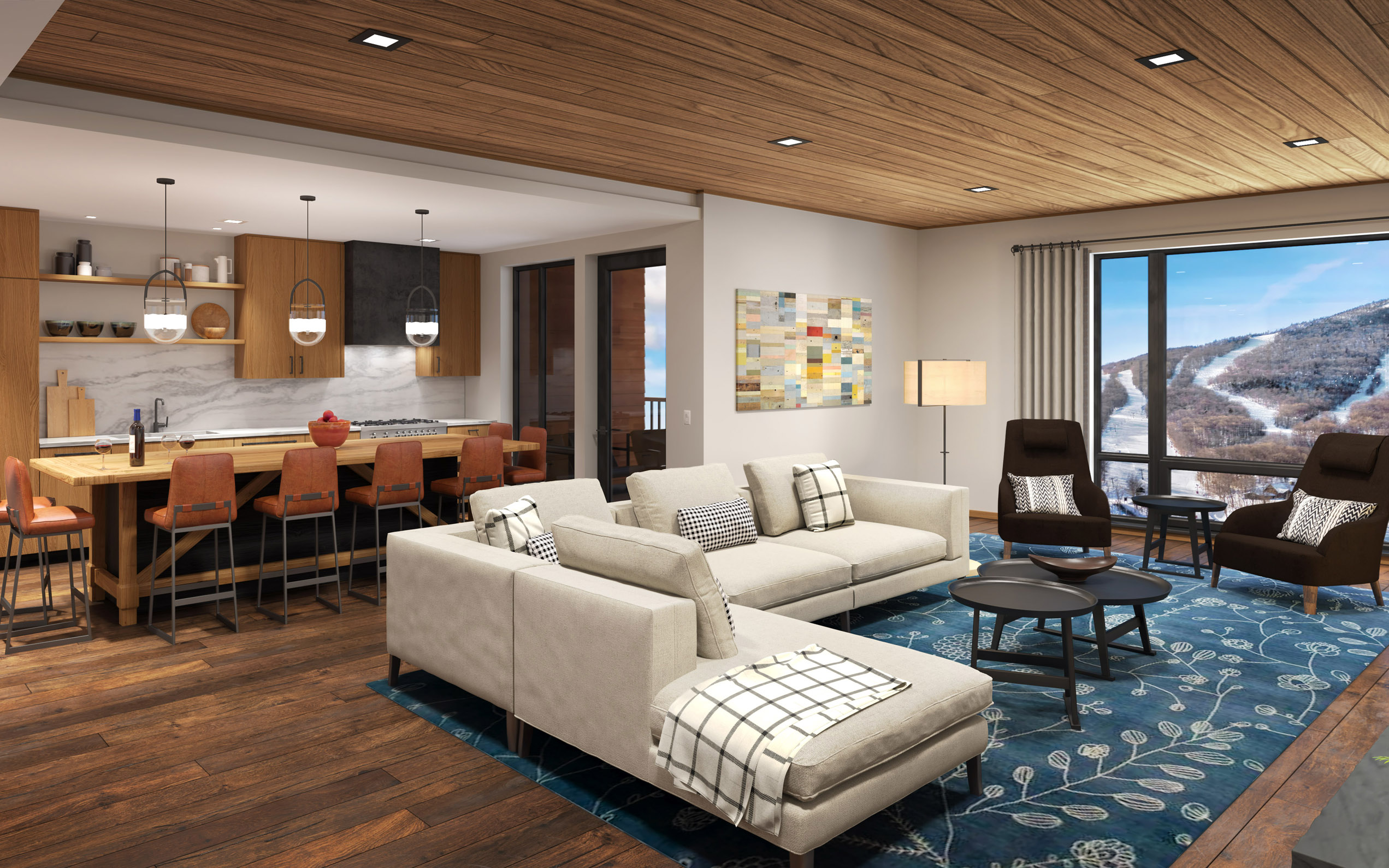 All 19 private residences include dramatic and exceptional views of Mt. Mansfield from the great room and expansive balconies, while views of the Spruce Peak ski trails are prominent from the bedrooms. All residences include in-home elevators that deliver you from your front door to the mountain’s base; spacious balconies, sweeping floor-to-ceiling windows; top-tier wood flooring and wood-ceiling details; and best-inclass materials including appliances, lighting, soundproofing, and integrated technology.
