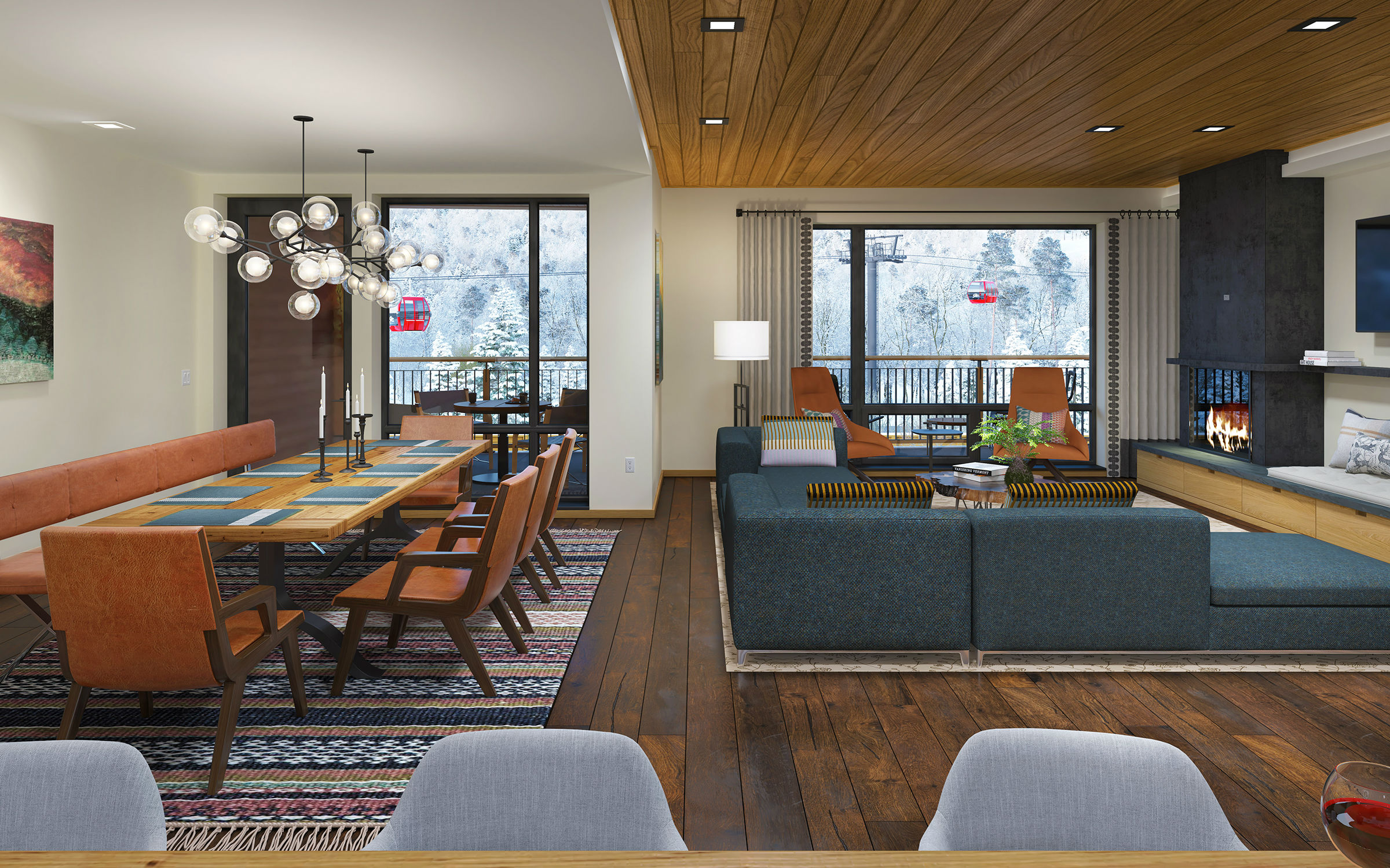 The three-bedroom, four-bathroom townhomes expand on the second level down to the snow front level, providing direct access to the slopes and connecting you with the mountain unlike any other residence. Enjoy floor-to-ceiling windows, spacious outdoor terraces with ample entertaining space, and contemporary alpine architecture.