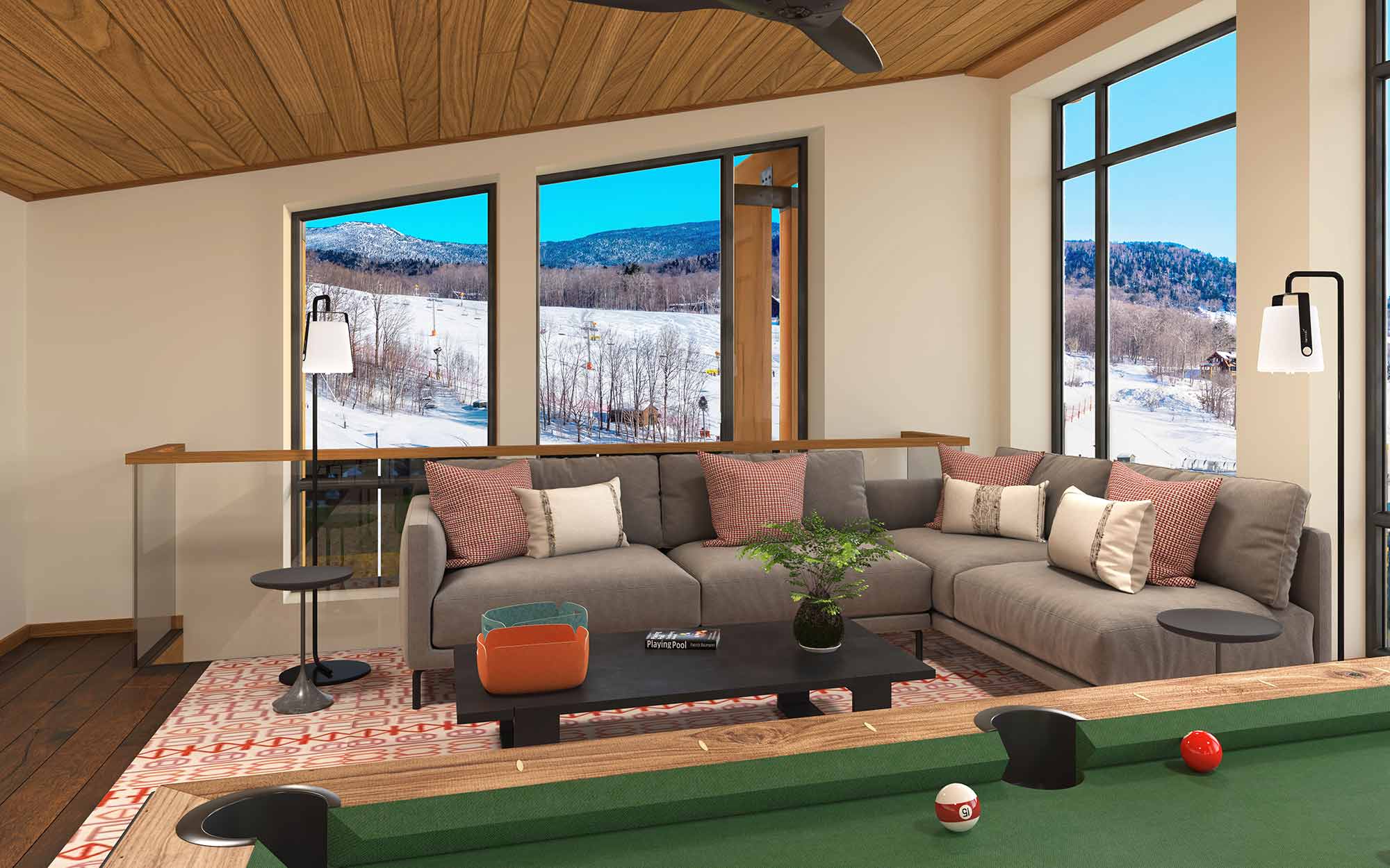 Just outside your door overlooking Mt. Mansfield is the exclusive members-only private Club pool. This stunning amenity features cabanas, entertainment areas, and heated tiles for year-round use by Club members and their guests.